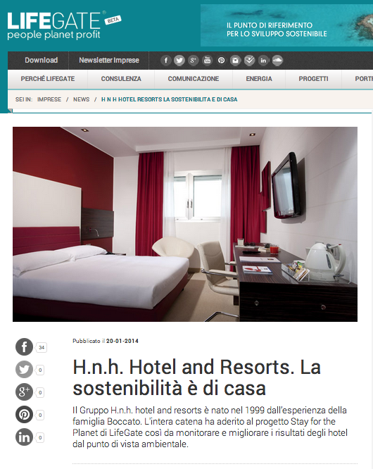 Il Gruppo H.n.h. hotels and resorts è nato nel 1999 dall’esperienza della famiglia Boccato. L’intera catena ha aderito al progetto Stay for the Planet di LifeGate così da monitorare e migliorare i risultati degli hotel dal punto di vista ambientale.